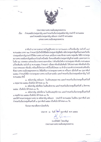๑.สมัยสามัญ สมัยแรก ในเดือนพฤษภาคม และกำหนดวันเริ่มประชุมตั้งแต่วันที่ ๑ พฤษภาคม ๒๕๕๘ เป็นต้นไป มีกำหนด ๓๐ วัน
